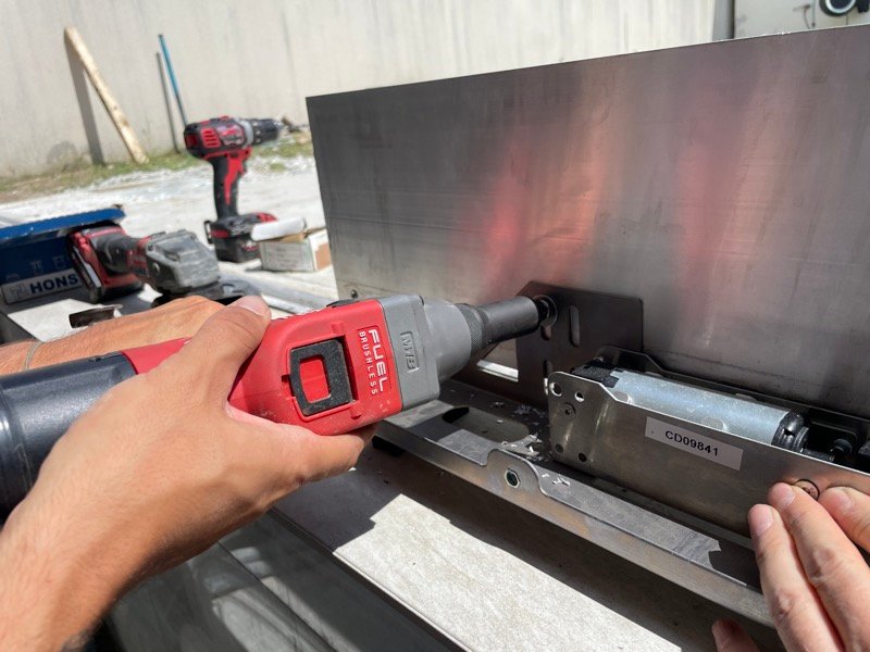 Nous proposons un système de motorisation spécialement adapté aux terrasses mobiles.